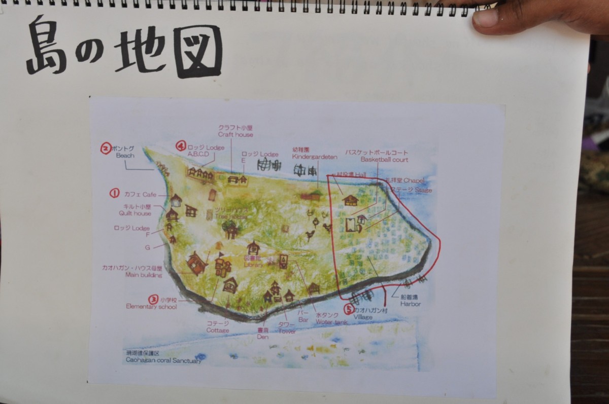 カフェでひと休みしたら村の暮らしを案内してくれます。村の主な産業はキルト作り。子どもたちがこの島の暮らしの中で見つけたモチーフを、キルトにして、自分の名前も刺繍したりします。大人は大きい大作も。