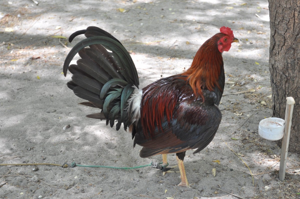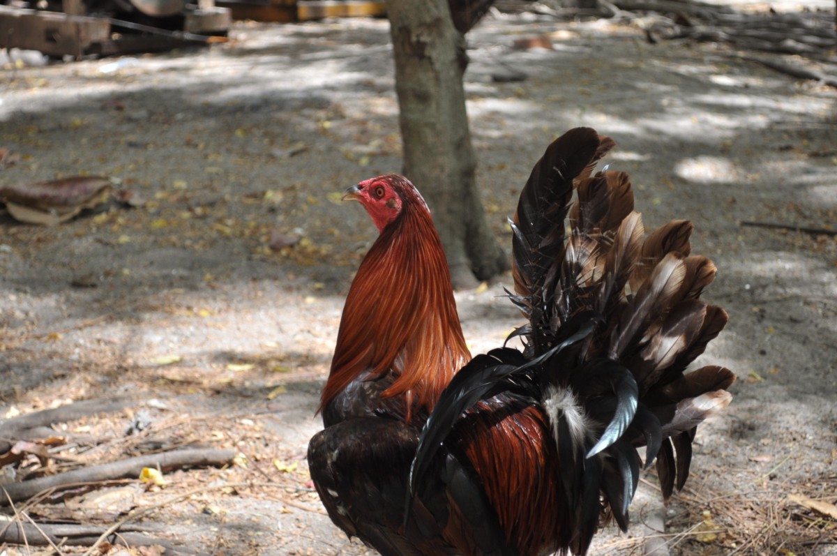 村の至るところにひもに繋がれたFighting Chickenは、闘鶏用のニワトリ。どちらが勝つか賭けをして、どちらかが倒れるまで戦う、フィリピンでは代表的なギャンブル。