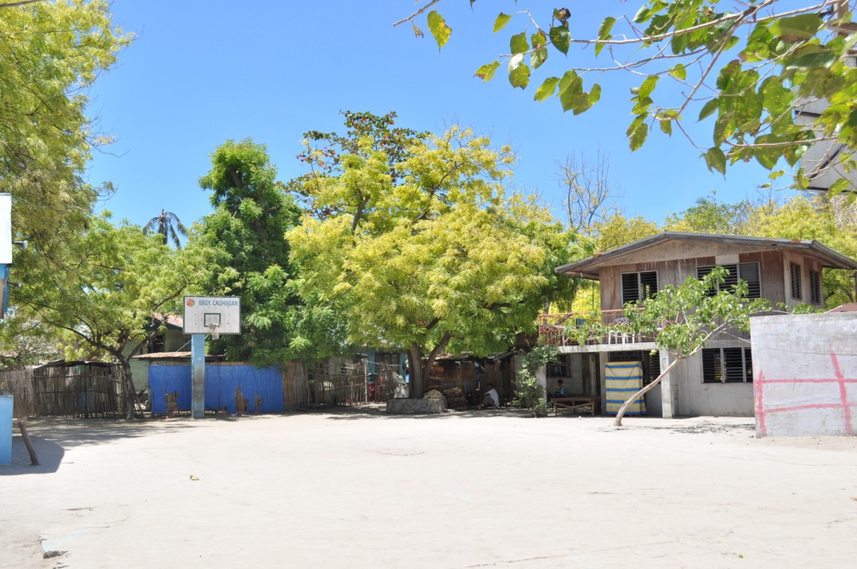 村のバスケットボール広場。フィリピンではサッカー場や野球場のように広くない場所でも楽しめる、バスケットゴールをよく見かけます。子どもから大人まで楽しむそうです。