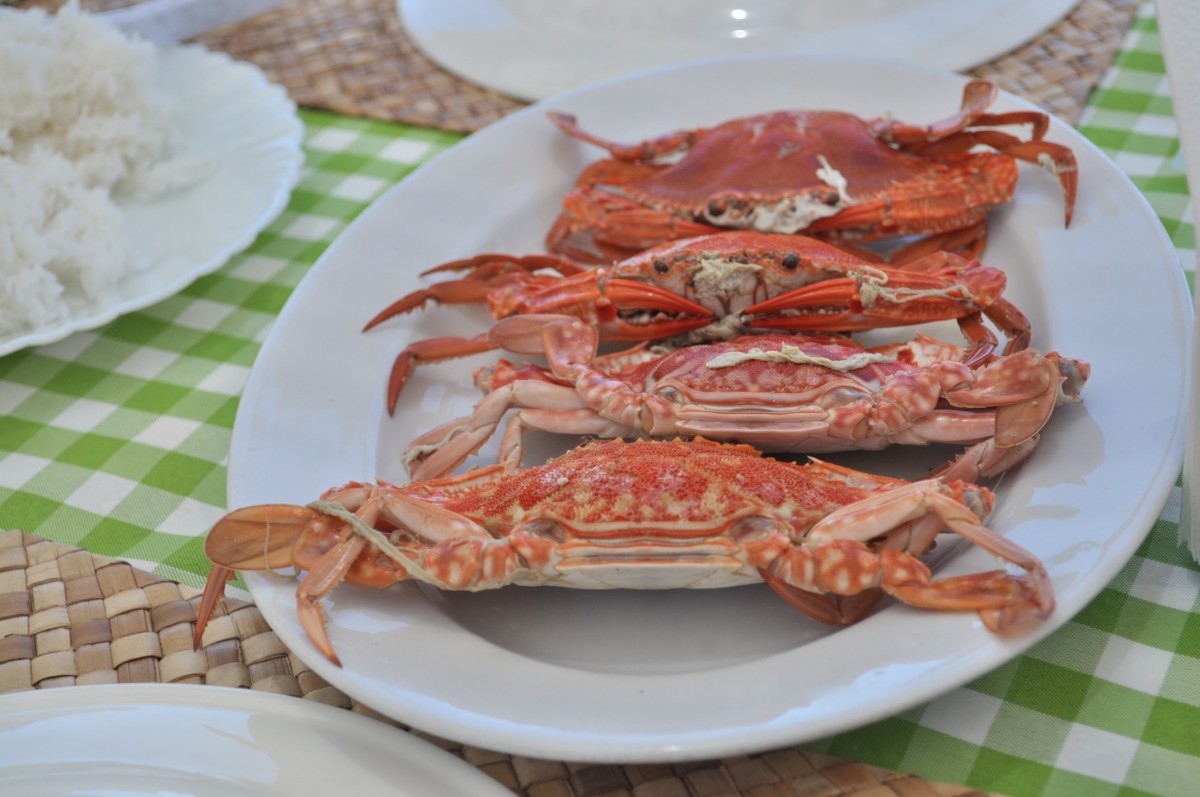 蟹はひとりひとつ。調理してくれたフィリピン人スタッフの方に割っていただきました。
