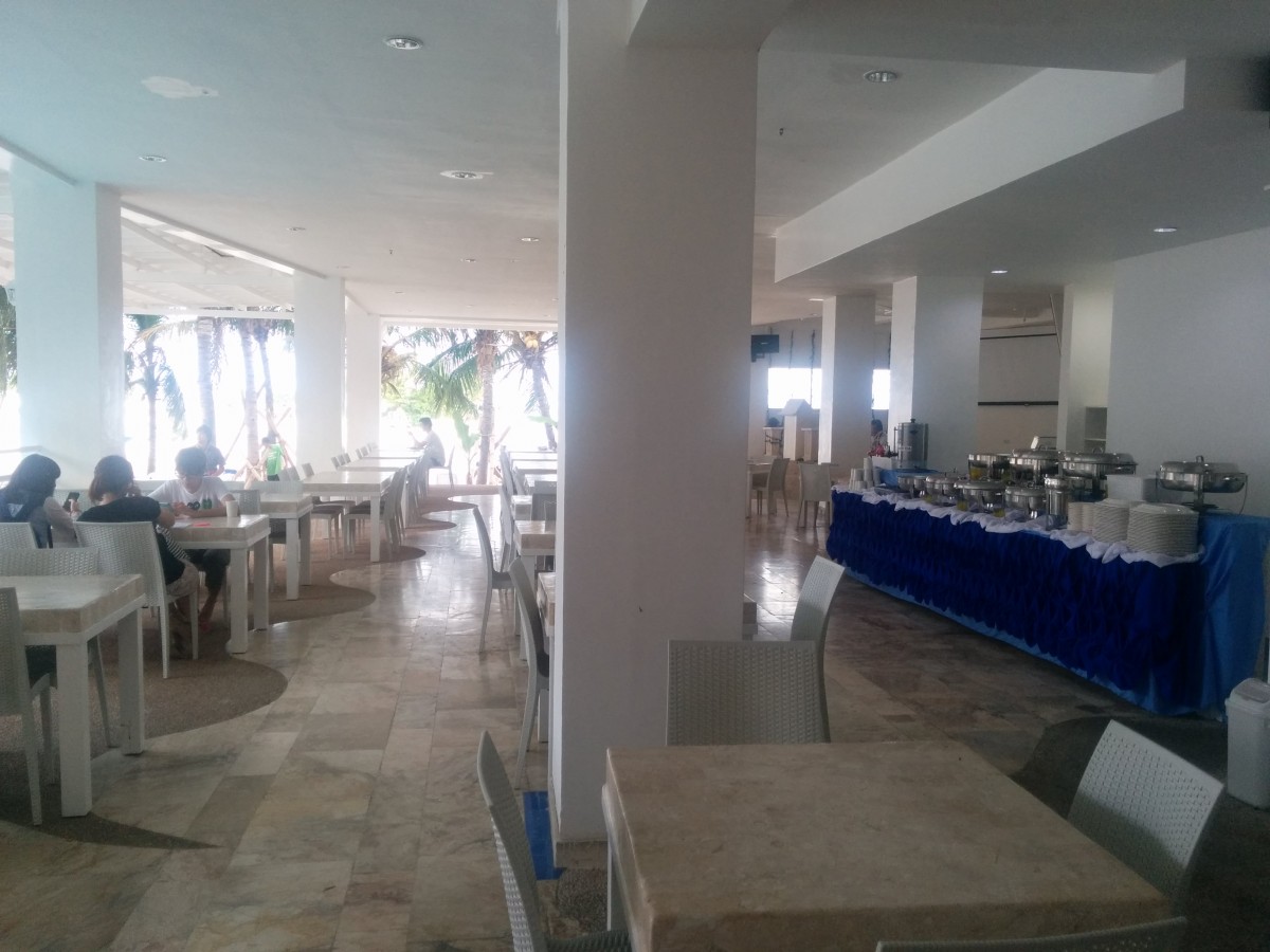 QQカフェの食堂はこんな感じ。海の横にあるので開放的で気持ちいい。ただし外にあるのでハエには気をつけるためご飯は置きっぱなしにしない。笑