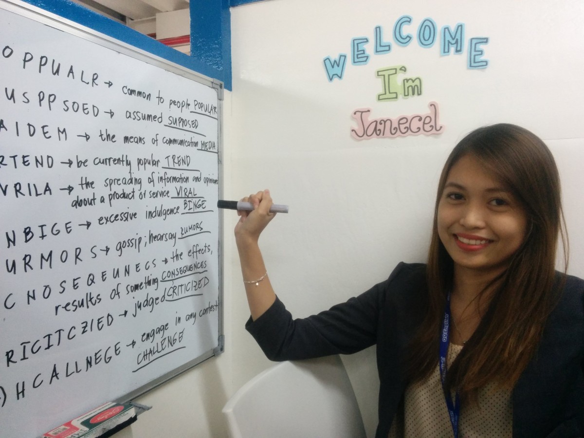 頭がキレキレ、会話も知的。礼儀も正しく、それに加えてとってもチャーミングな性格。毎週14:00から14:50はJanecel先生のNews (News Alert)の授業です。