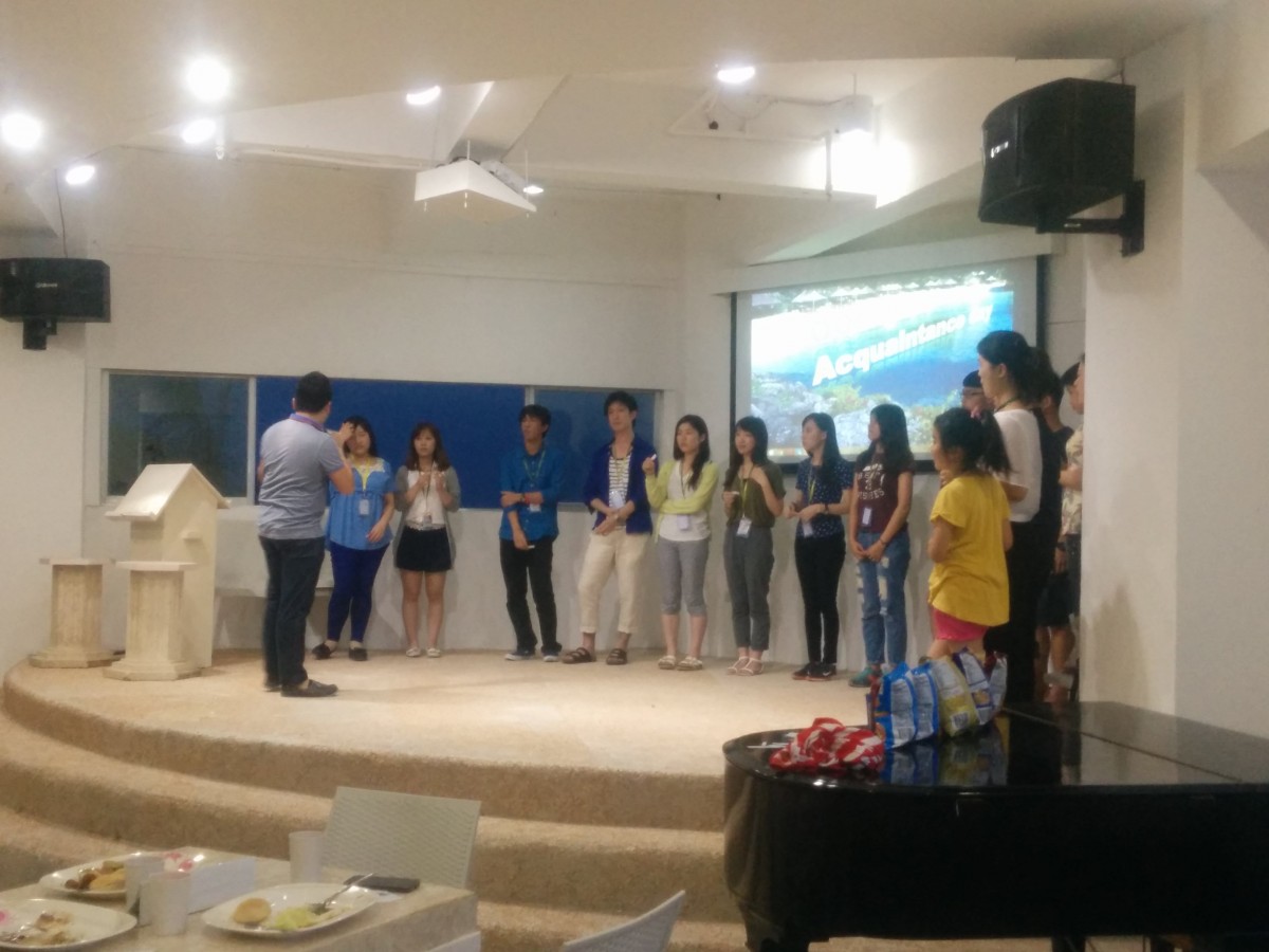毎週月曜日の夜はウェルカムパーティが開催されます。今週から新しく来た仲間たちがステージの上で次々と自己紹介をしていきます。いつもながら先生の司会はとてもうまい。他の先生達も仕事が終わっても、月曜日は興味津々でパーティを覗きに来て盛り上げてくれます。