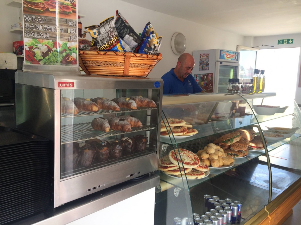 テラスに売店があり、マルタの青空の下で朝ごはんをいただきました