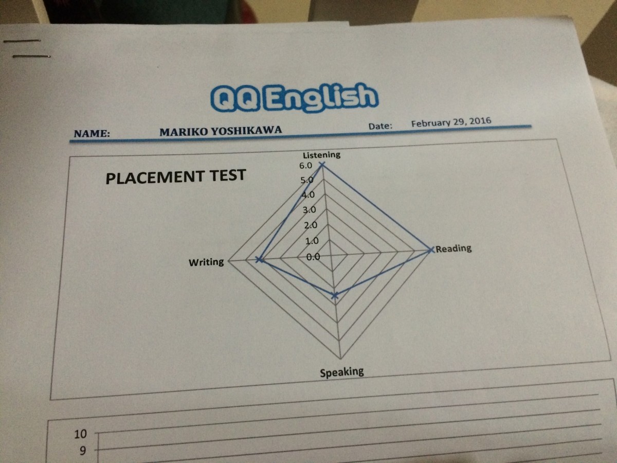 成績があまりにも悪く載せるのが恥ずかしいのですが…。reading=listening>writing>>>speaking