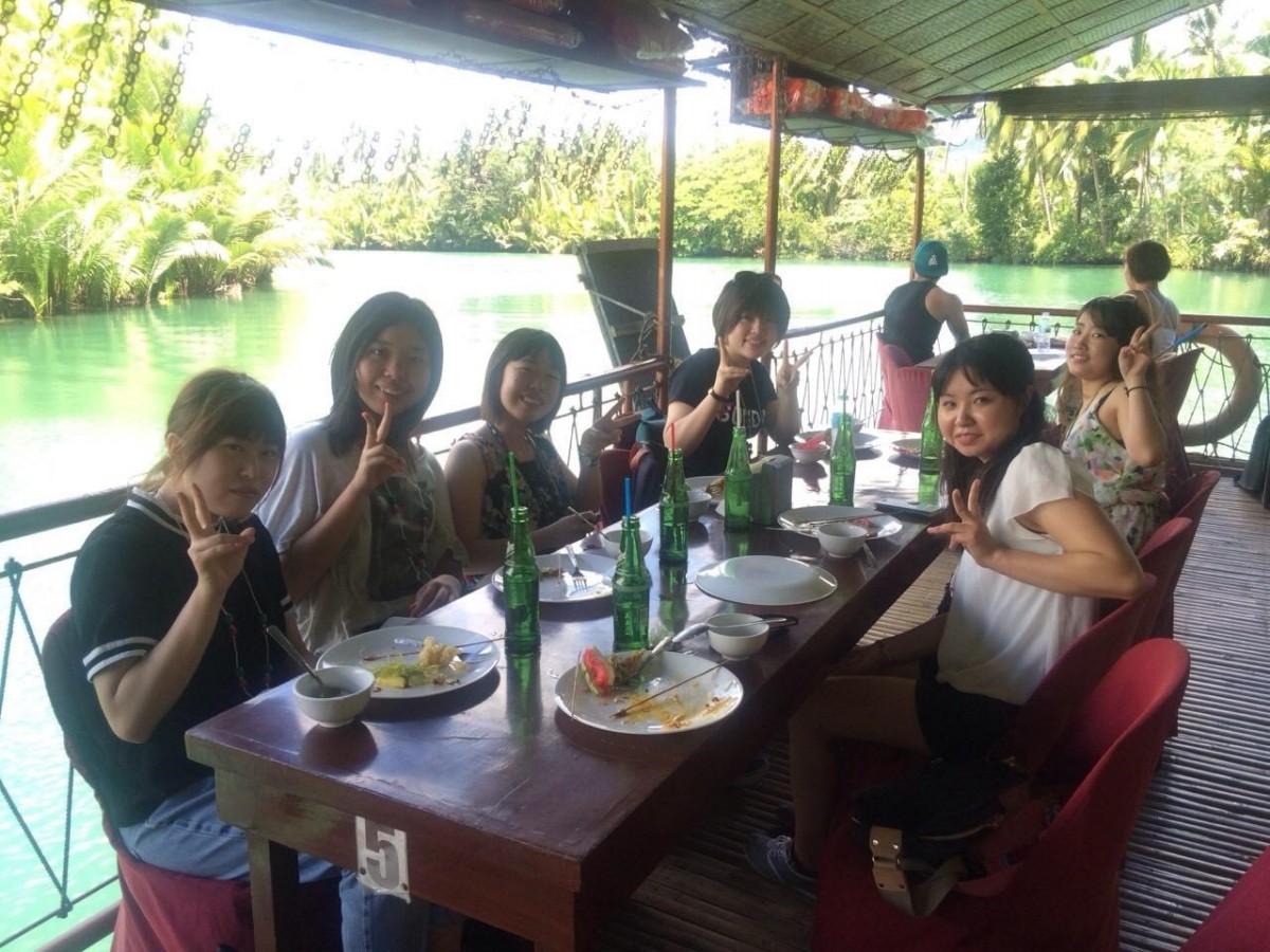 さまざまな観光地を巡り、お昼は川下りをしながら船で食べました(OvO)。エメラルドグリーンの川や緑豊かな自然の風景を眺めながら食事ができて幸せでした!