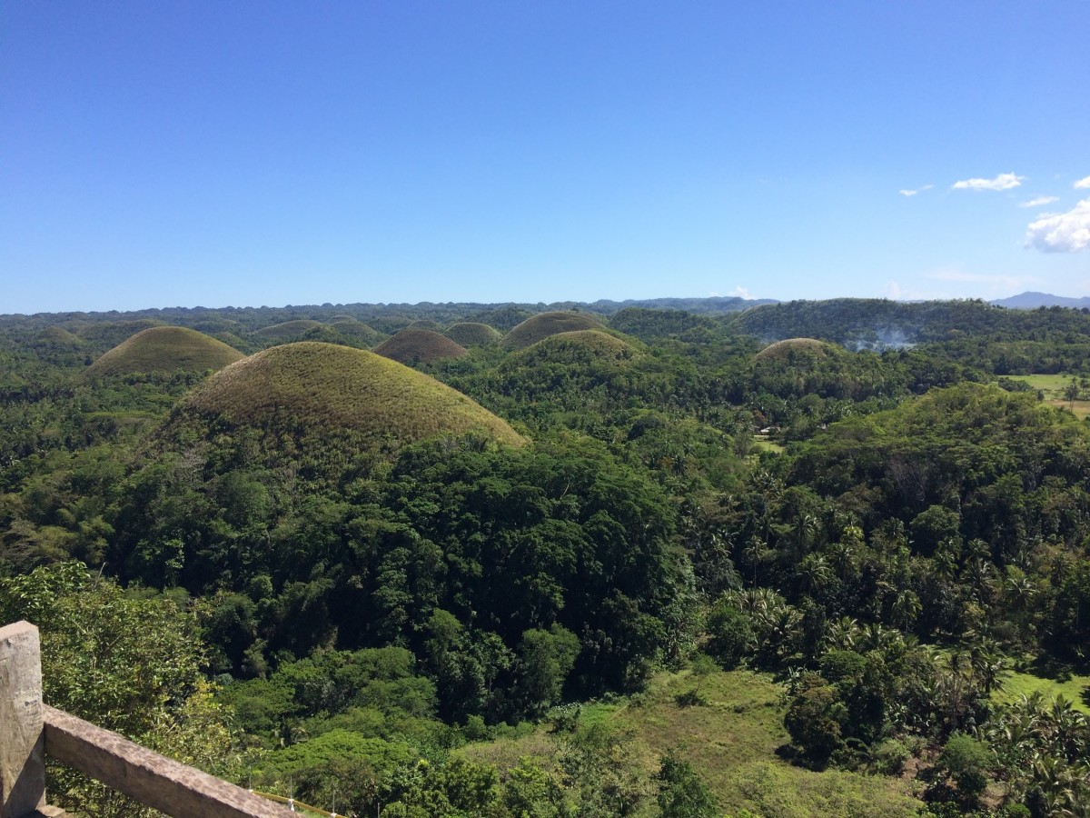 お次はチョコレートヒルズに行きました! バレンタインデーにちなんだ214段の階段を登ると素晴らしい景色が飛び込んできました。何千もの丘がチョコレートのような色に見えます。