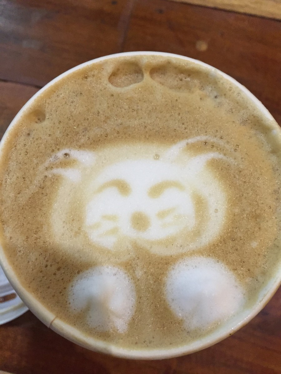 ここではいつもカフェラテを注文していて、カフェラテを頼むとラテの表面に絵が描かれて提供されます。これも僕のお気に入りのポイントのうちのひとつです。