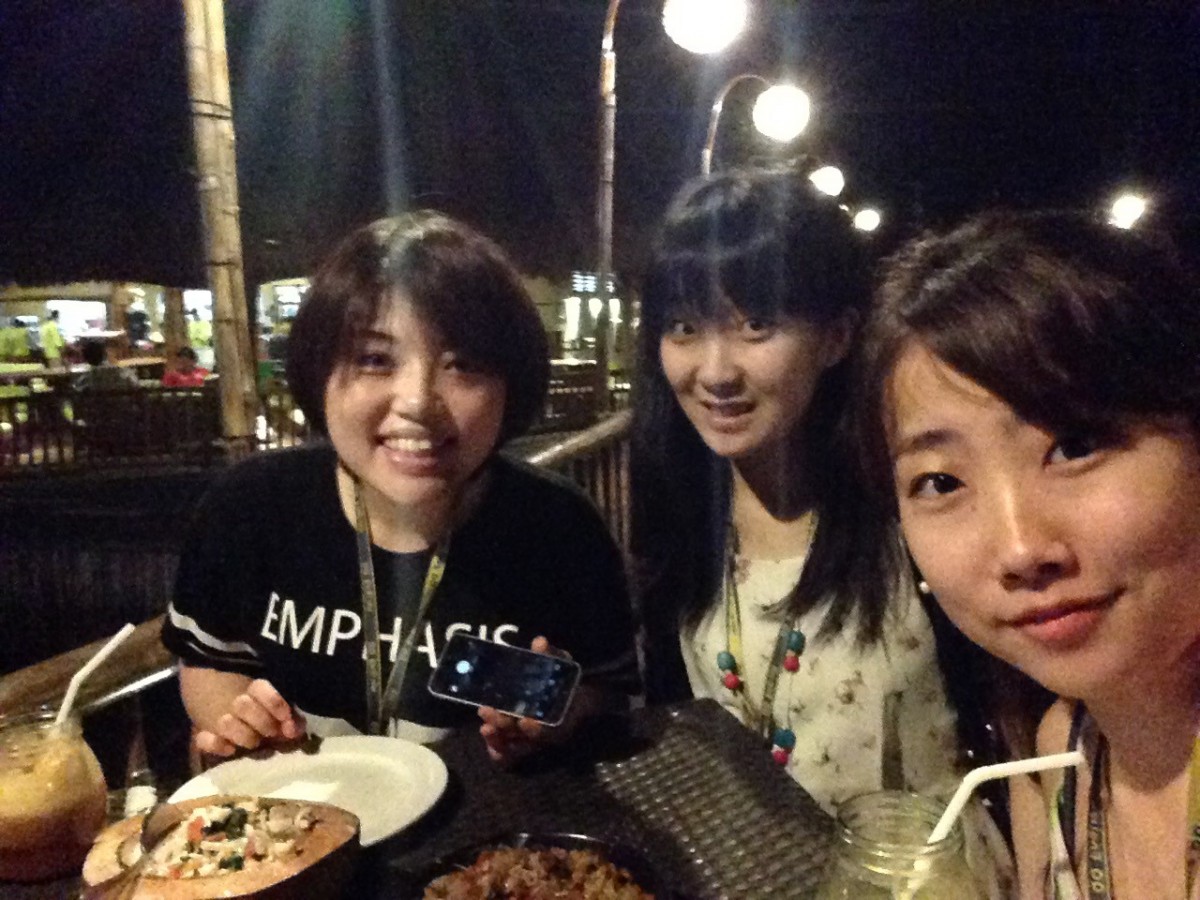 今日は奨学生仲間でありルームメイトでもある3人でランタウという水上レストランに来ました。夕焼け時がきれいだと聞いていたのですが授業を終えてから向かったため、残念ながら到着したのは日没後でした。それでも海風を感じながらおいしいローカルフードを食べられて満足です。