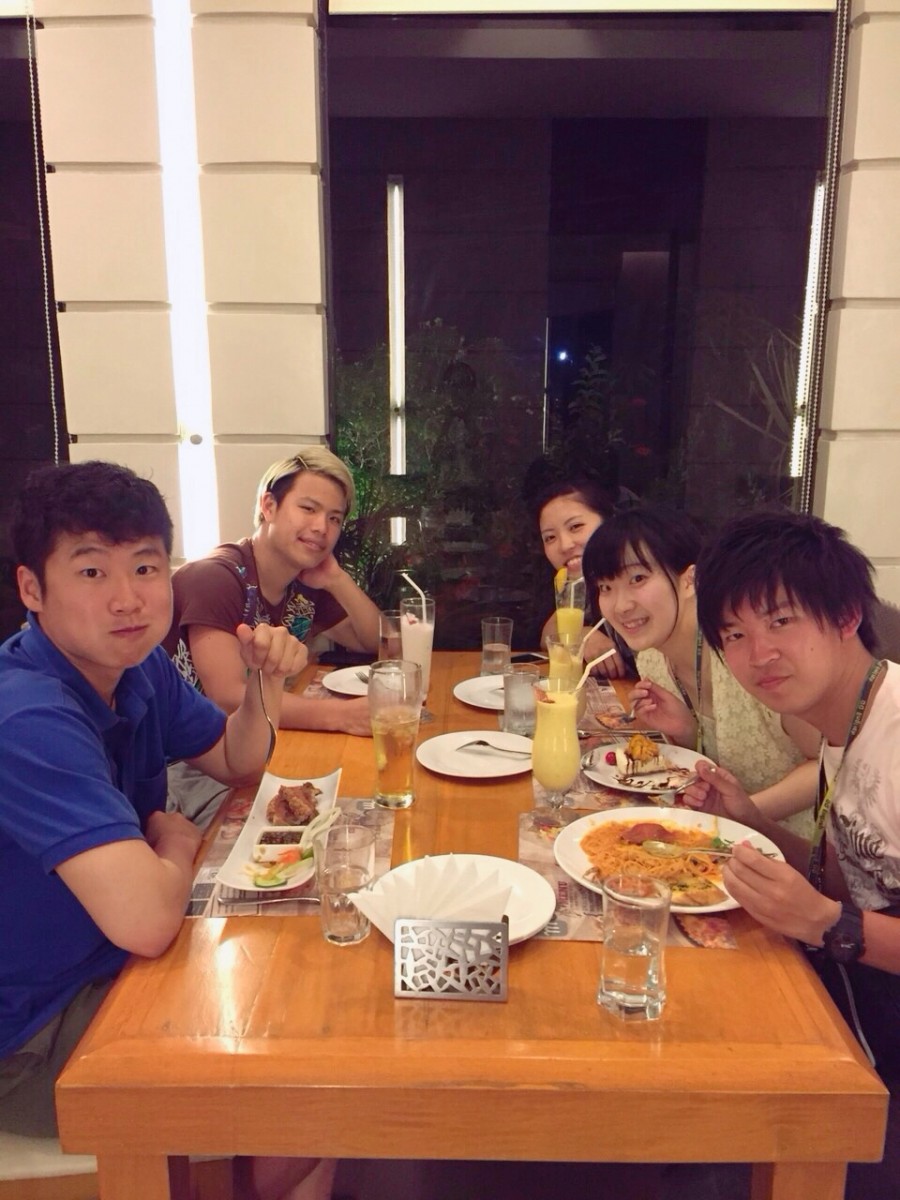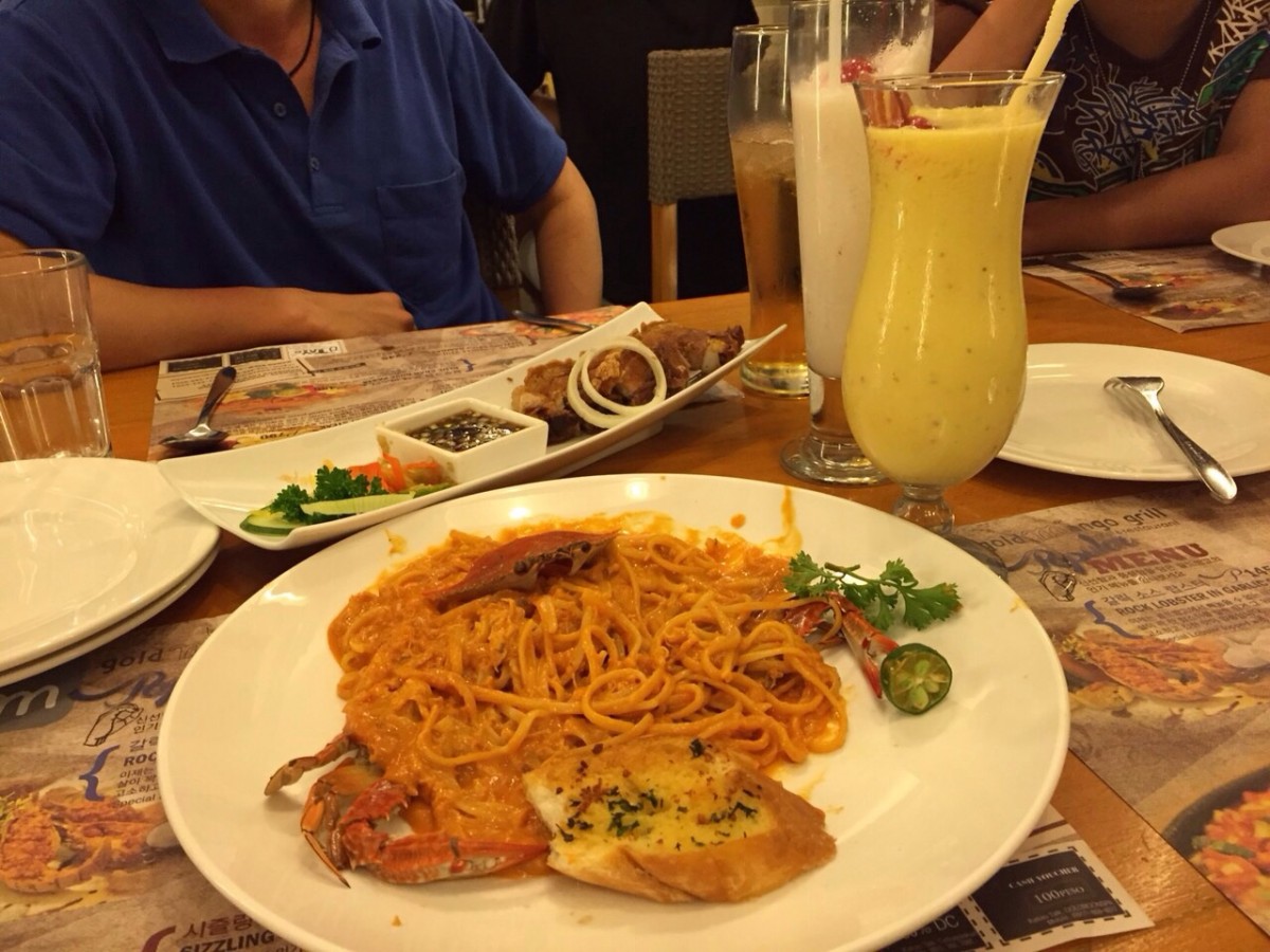 夕飯はGold Mangoという学校の近くのフィリピン料理屋に行きました。りんごとマンゴーのシェイクとカニクリームパスタは絶品でした。