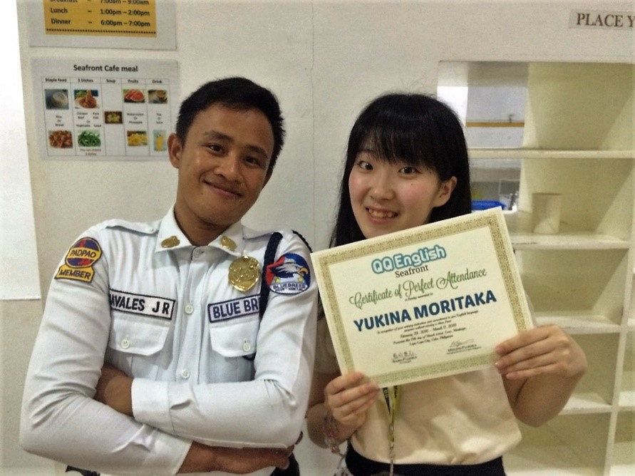 2週間すべての授業に出席したため、Perfect Attendanceの賞状も頂きました