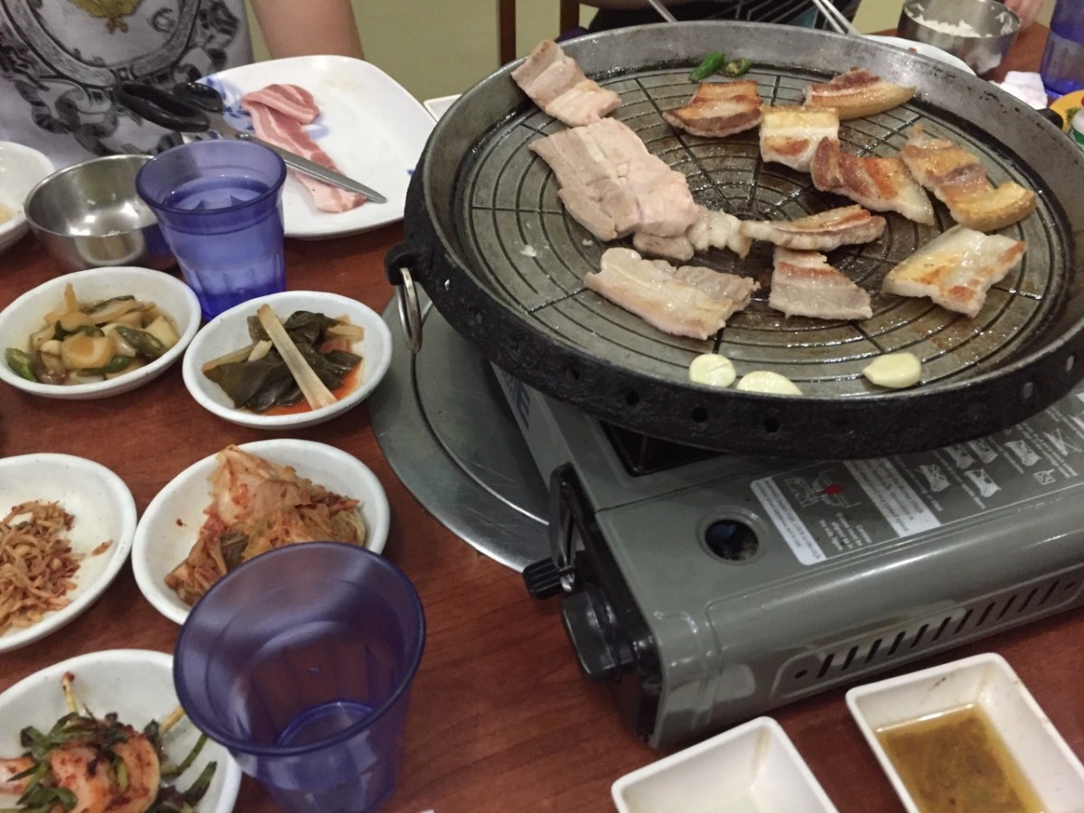 今日の授業後は、僕のバッチメイトのうちのひとりが明後日で日本に帰国してしまうので学校の外に食事に行きました。学校の近くにある韓国料理屋さんで、時間無制限でお代わり自由、これで300ペソ日本円で728円と、とてもおいしかったです。