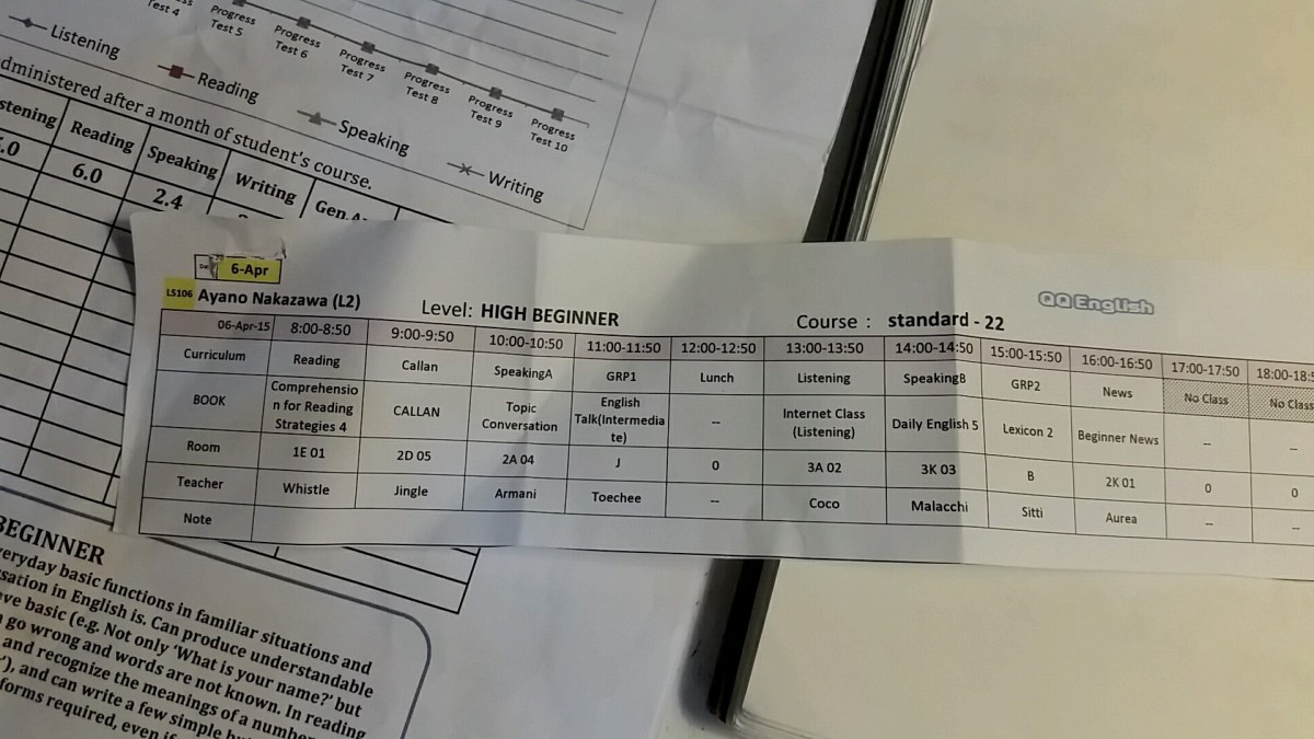 今日はいよいよ本格的な授業が始まります。昨日受けたレベルチェックの結果が出ました。結果はhigh beginnerで、スピーキングが弱いという結果が出ました。