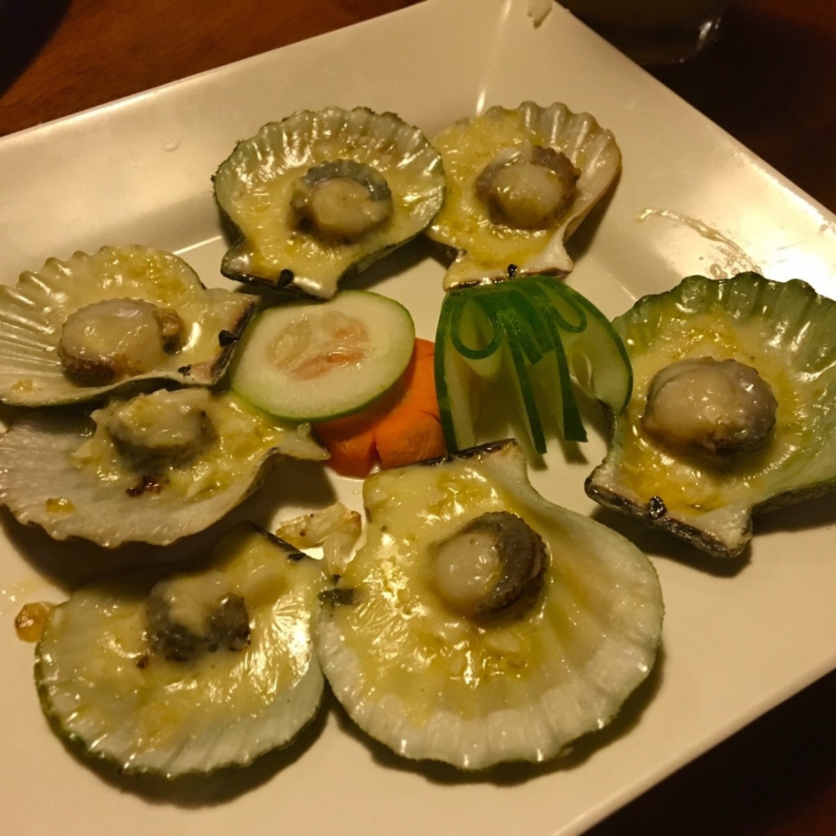 料理名を忘れてしまいました……。ガーリック風味のホタテにチーズがかかっていてとにかく美味しかったです!