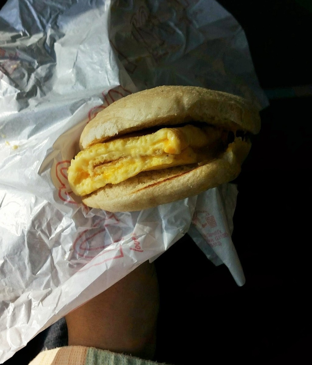朝の5時に出発し、車に揺られること5時間、オスロブのビーチに着きました。オスロブへ向かう途中、休憩ポイントでマックをもらいました。なんとお肉が入ってないバーガーです。 甘いフレンチトーストをマフィンで挟んだもので、意外と美味しかったです。