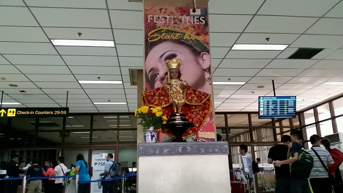 セブマクタン空港に到着、セブでよく見かけるマリア様