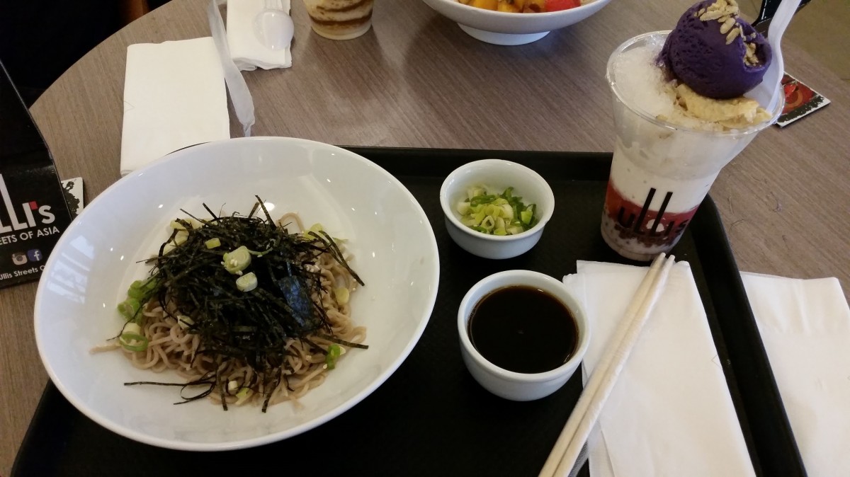 搭乗まではまだまだ時間があったので、空港内のカフェでお昼を食べました。メニューにお蕎麦があったのでついつい頼んでしまいました。麺は短かったですが味はおいしいです。