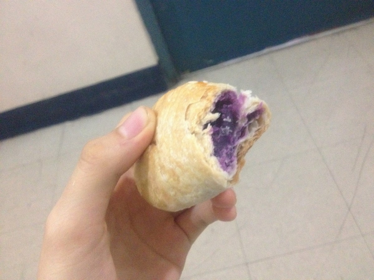そして今日は、最終日にして初めてCEGAの1階にあるケーキ屋さん、アンジェリカに行きました。そこで中にフィリピン名物の紫芋、ウベが入ったパンを買いました。食べてみると、デニッシュ生地のパンの中にたっぷりのウベのペーストが入っていました。甘くてとてもおいしかったです。