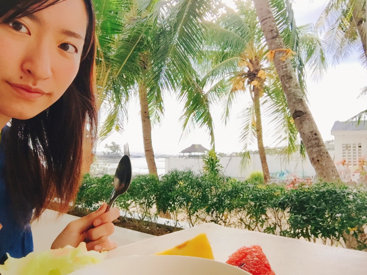 南国のきれいな海を眺めながら朝食。不安だった気持ちがワクワクした気持ちに
