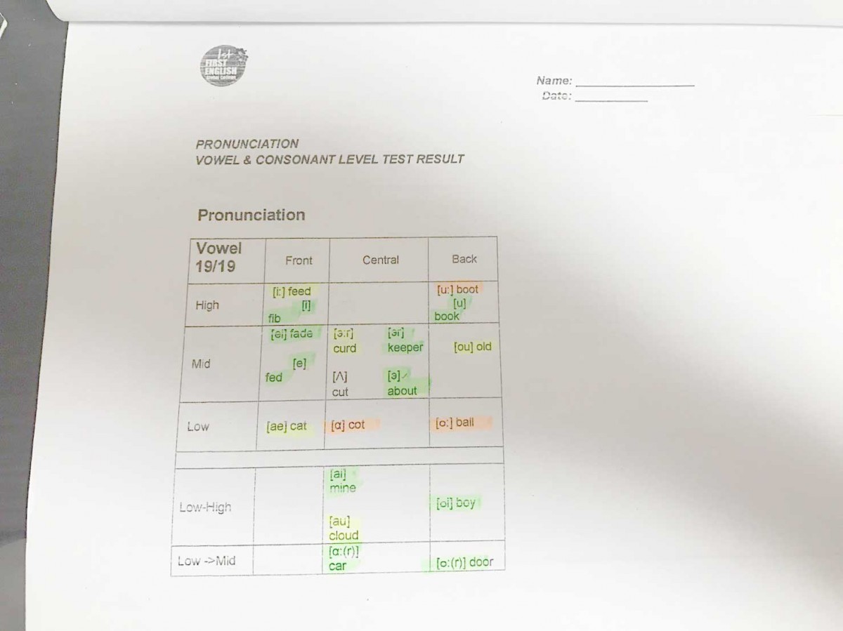 発音チェックでは、オレンジ→黄色→緑の順番に発音がしっかりできている、ということだったのでしっかり発音できるものを増やすことでオレンジを減らして緑を増やしたいと思います。