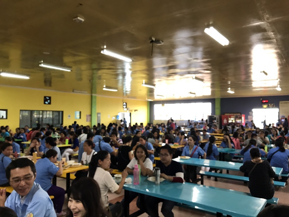 工場内には12棟の建物があり、想像していたより広い面積で大きな工場だったのが印象的でした。工場内を紹介してもらった後、現地の社員のみなさんと一緒に広い社員食堂で昼食をいただきました。