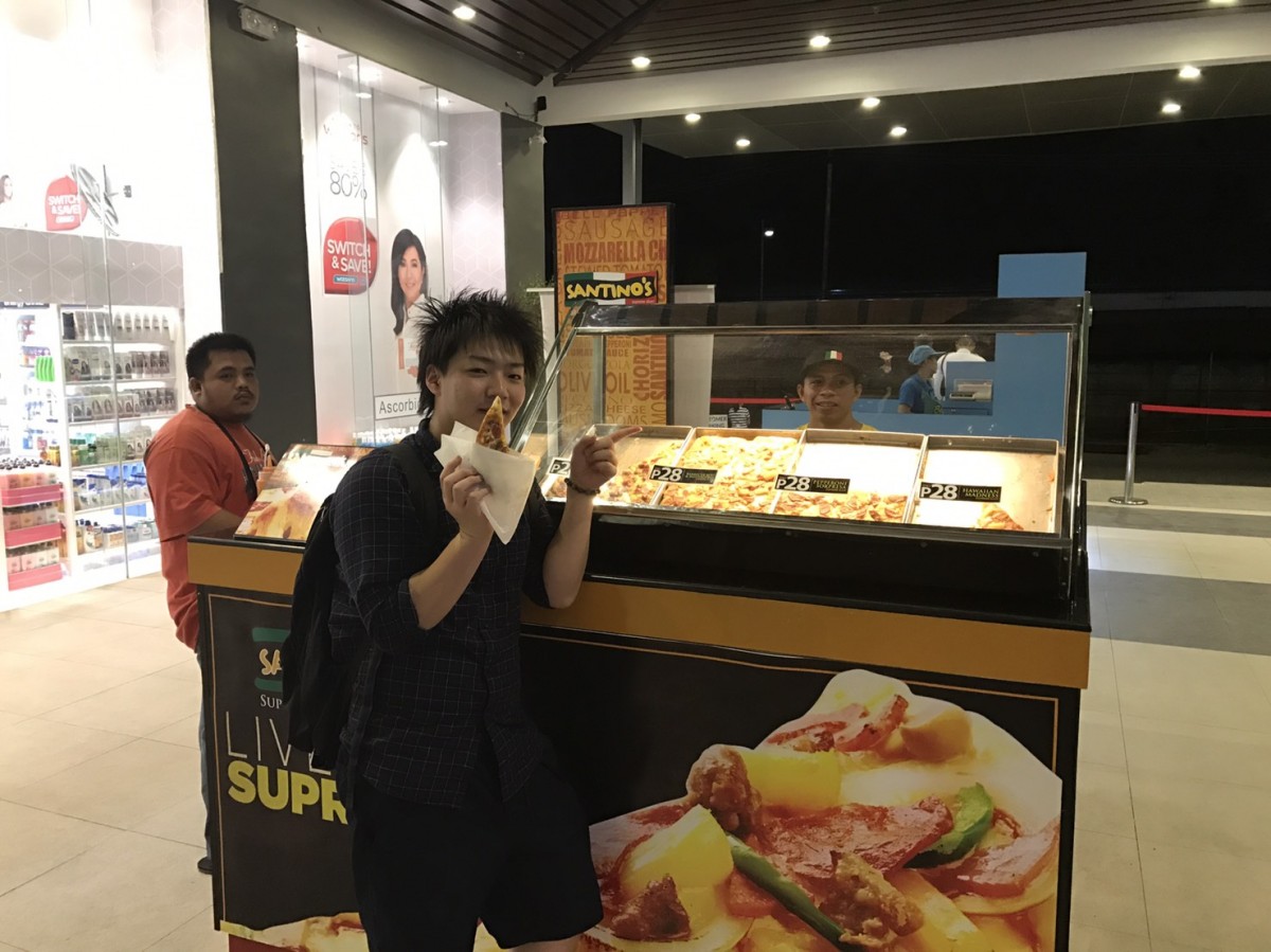 授業後は、学校から一番近いビサヤモールに行きました。ピザがひと切れ28ペソと、日本円にして60円くらい。とても安くて大学生のお財布にも安心、そして見た目もおいしそうなので食べてみることにしました。