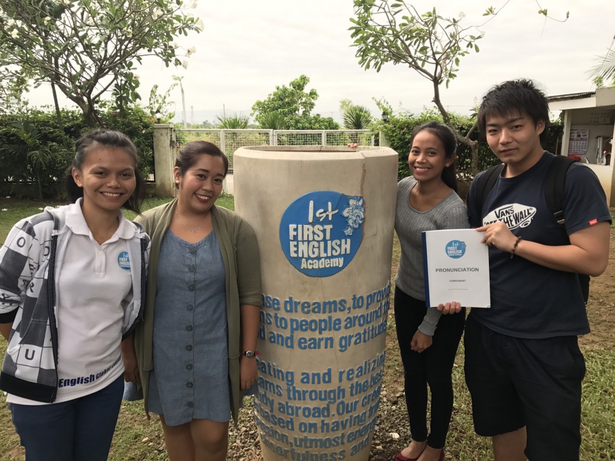First Englishの中庭で先生たちと
