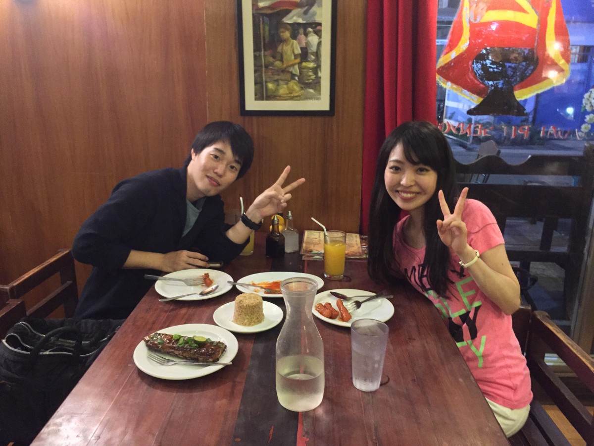 セブで過ごす最後の夜は学校の友達とみんなで夕食に行きました。