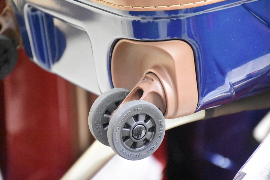 キャスターは日本メーカーHINOMOTO製のサイレントランを装着。ツインキャスターと二重ジッパーで耐久性があり、容量もあります。技術とラグジュアリー感がマッチしたお勧めのハードキャリーです。