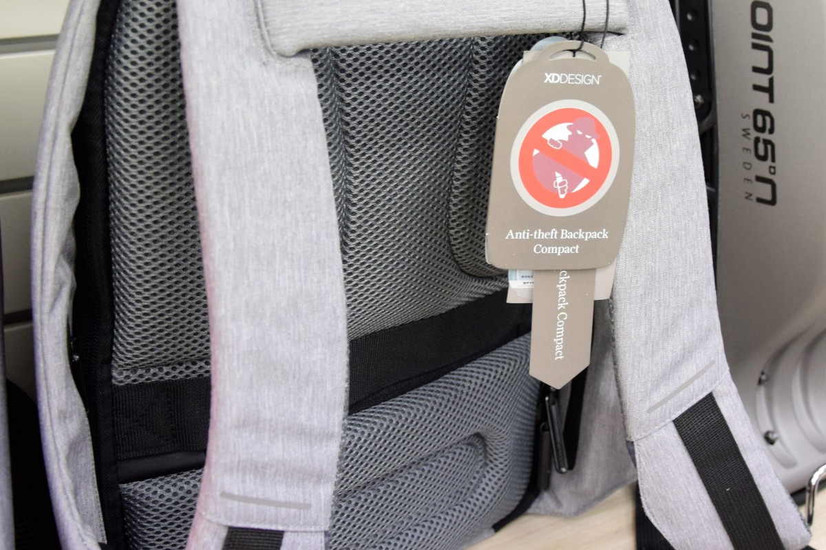 どこか近未来的なデザインのこちら、実は表面にファスナーが一切なく、裏側の背中に当たる部分に付いています。傍目にはどこにファスナーがあるかわからないため、気づかないうちに中身を盗まれていた…というスリの被害を防ぐことができます。さらに前面と両側面は耐刃素材を使用した6層構造で、刃物で切り付けて中身を盗むといった手口にも対応。